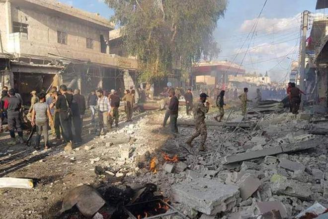 وقال المرصد السوري لحقوق الإنسان، إن الانفجار الذي لم تتضح طبيعته بعد، وقع في أحد الأسواق قرب دوار البلدية.