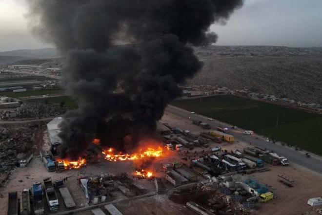 ووفقاً لرويترز، طال القصف الروسي موقعاً قرب معبر حدودي وعلى مشارف بلدة (سرمدا)، بالإضافة لقصف موقع آخر قرب الحدود التركية.