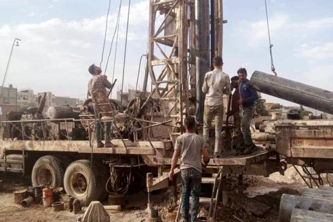 أدخلت بلدية عامودا، السبت، بئراً جديدة في خدمة الضخ لشبكة المياه النظيفة في المدينة.