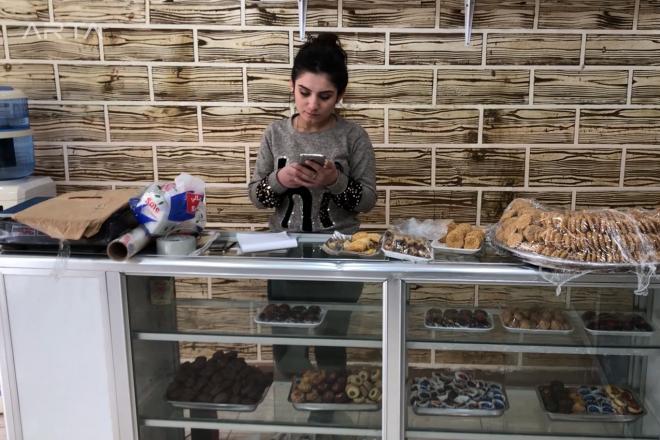 "درست حتى الصف العاشر وبعدها بقيت في البيت دون عمل لفترة طويلة، إلى أن جاءت لجنة المرأة إلى بيتنا وجرى الحديث حول افتتاح محل للحلويات خاص بالمرأة، وأنا تقبلت الفكرة، وبعد ذلك بـ 10 أيام فتحنا هذا المحل، والآن أعمل فيه، وأنا سعيدة بهذه التجربة".