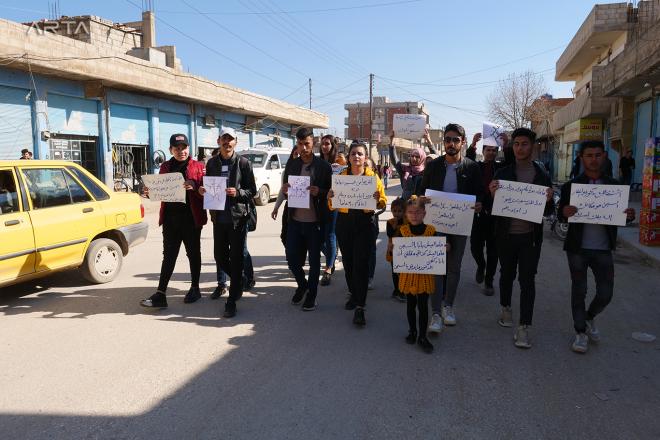 تظاهرة جديدة في عامودا تطالب بالإفراج عن مدرسين بعد أيام على توقيفهم