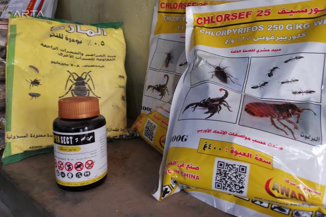 المكتب الإعلامي في بلدية الشعب في القامشلي، أوضح لآرتا إف إم أن كل خمسة سنتيمترات من المبيد الرذاذي تضاف إلى ليتر واحد من الماء، ويتم رشها في المنازل للقضاء على الحشرات والصراصير.