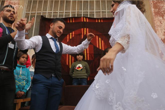 وجاءت حفلة الزفاف الصغيرة هذه، كثمرة للتعاون بين ثماني منظمات وجمعيات محلية في الحسكة، والتي يقول القائمون عليها إنهم حاولوا من خلالها التأكيد على أن الحياة مستمرة رغم كل الظروف.