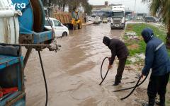 تجمعات كبيرة لمياه الأمطار في أحياء شرقي القامشلي والبلدية تواصل سحب المياه