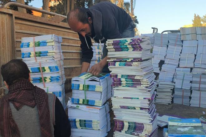 استلام الكتب يأتي استعداداً للعام الدراسي الجديد 2022-2023 الذي حددت وزارة التربية السورية بدايته في الرابع من أيلول/ سبتمبر المقبل.