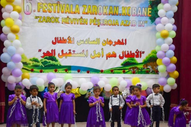 يستمر المهرجان السادس للأطفال في كوباني، لليوم الثاني الأحد، بمشاركة 20 فرقة من مناطق كوباني وصرين وعين عيسى.
