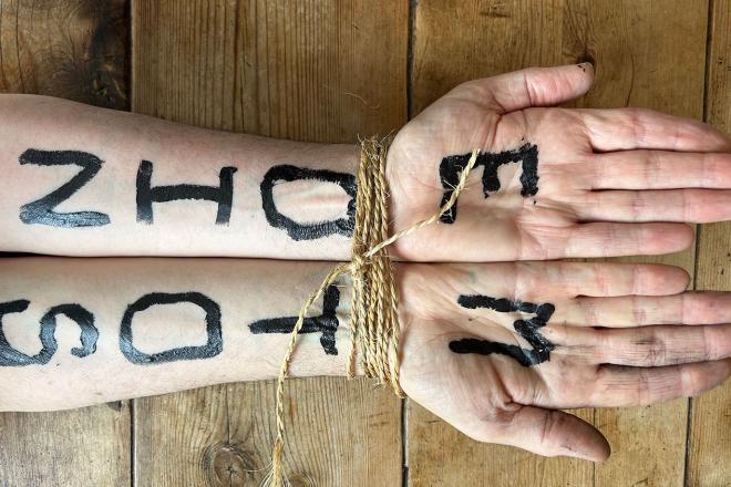 مشروع "مشاعر – أيدي مقيدة" هو "جولة من اثنتي عشرة خطوة على شبكة الإنترنت"، يقوم بها أناس مختلفون من بلدان مختلفة، ويستضيف كل "خطوة" موقع إلكتروني مختلف لمدة أربعين يوماً وأربعين ليلة.